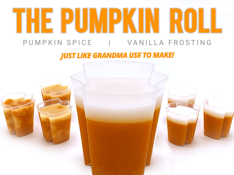 Just like Grandma's Pumpkin Roll ours are fall deliciousness in a gelatin shot. You can make them as a swirled shot, or in two layers as shown in the image above.